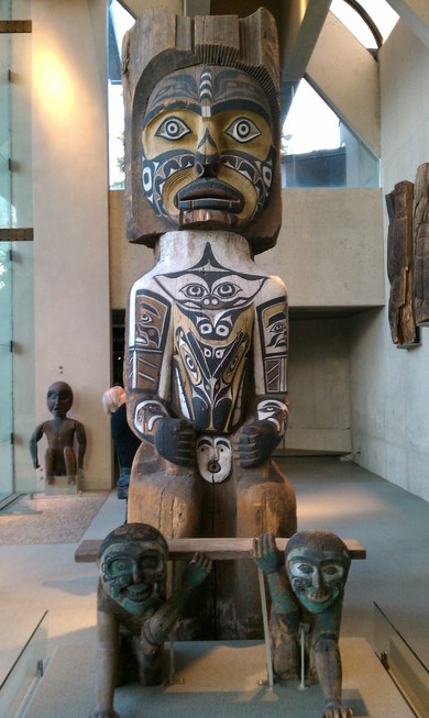 Heather had warned me that the last stretch up to the university (which owns quite a huge parcel of land at the end of the peninsula) was steep, and it was, but the views at the top were worth it. she'd also suggested the museum of anthropology to me, which is not usually my cup of tea, but then i saw that there was a Man Ray exhibit inside. i don't really understand his art but i do usually like it, so i bit the bullet and paid the admission. this museum seemed pretty not my kinda thing, with a huge room bigger than a gymnasium full of totem poles, and a gallery of woven baskets. the man ray exhibit was pretty disappointing, though a neat idea (original artifacts next to his art that featured them), and i prepared to leave dejectedly but got lost retracing my steps and ended up in a twisty maze of passages that was positively STUFFED with aboriginal/native artifacts of every kind imaginable and many i never would have imagined (there was no information about that wicker motorcycle. but it was awesome!).